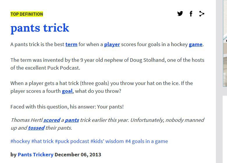 SensKat wrote:Cbinc wrote:Kardinal wrote:Ovi with 4 -- that's a toque (hat trick +1).its called a "pants trick" Everyone throws their pants on the ice?