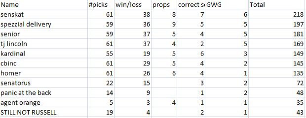 what's really cool about this pool is that I have 16 pts, yet I haven't made a single prediction all year.