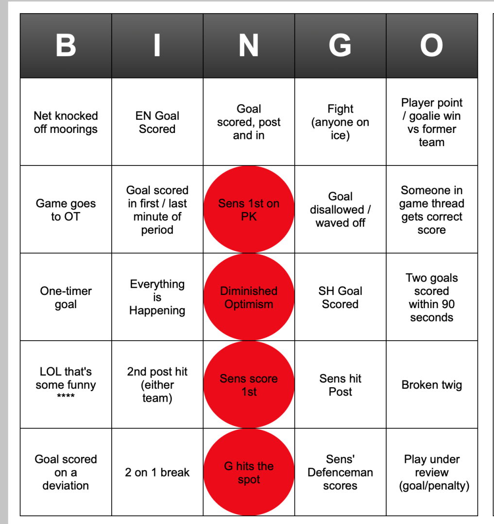 Get your Sens Bingo card here