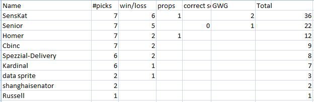 Kardinal wrote:Hey.....I put in a pick for game 1, but no GWG candidate. Stats table is FAKE NEWS!