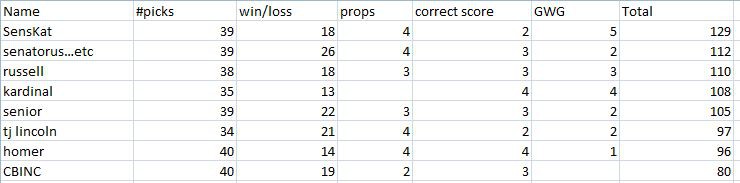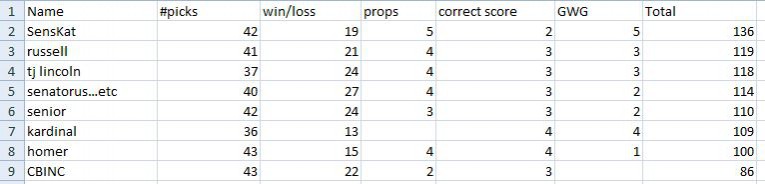well, Senskat rules the roost right now...and guess who is definitely NOT cheating this year...