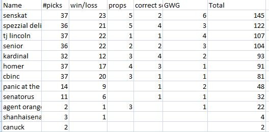 So I go from 65 to 63 points? 29 picks to 20? Sheesh.