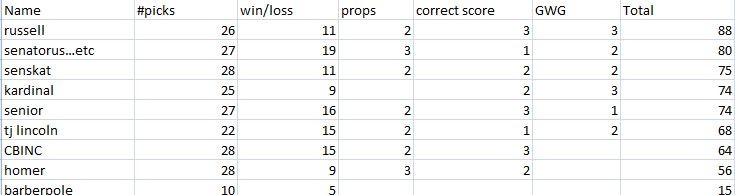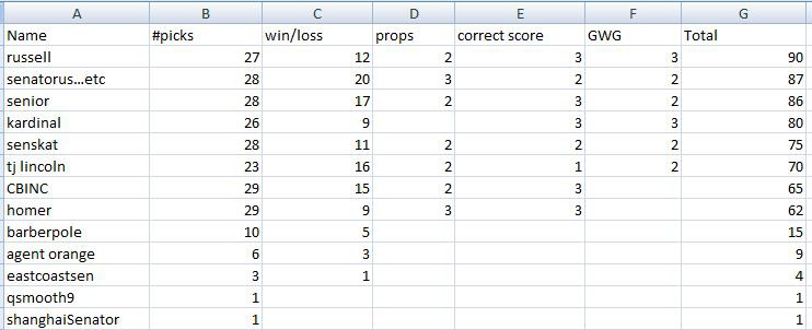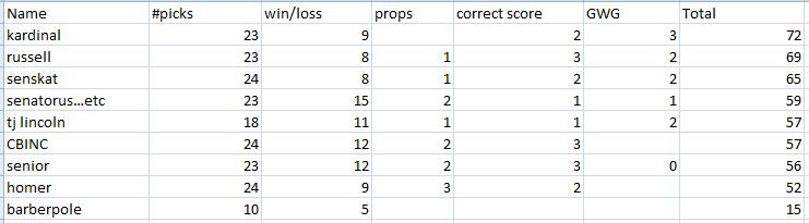 For the record, I got all the scores right... It's the Sens that are getting it wrong.