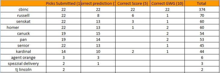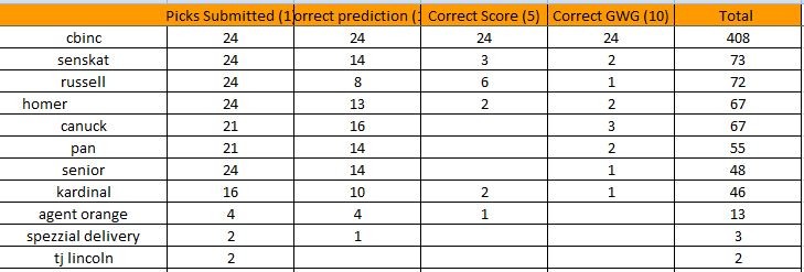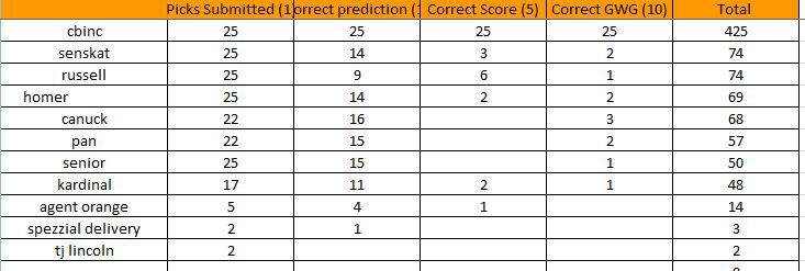 So the more your wrong the higher your score. Finally a pool Russell can excel in. Maybe we could change the golf pool to operate by the same rules as this pool.