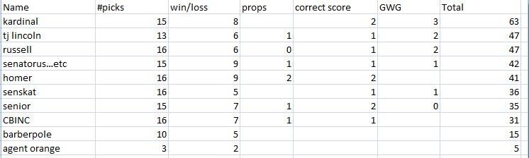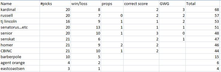 after two games. the latest being against NJ...props game coming up! last penalty..including overtime...just guess the team...worth 3 points!