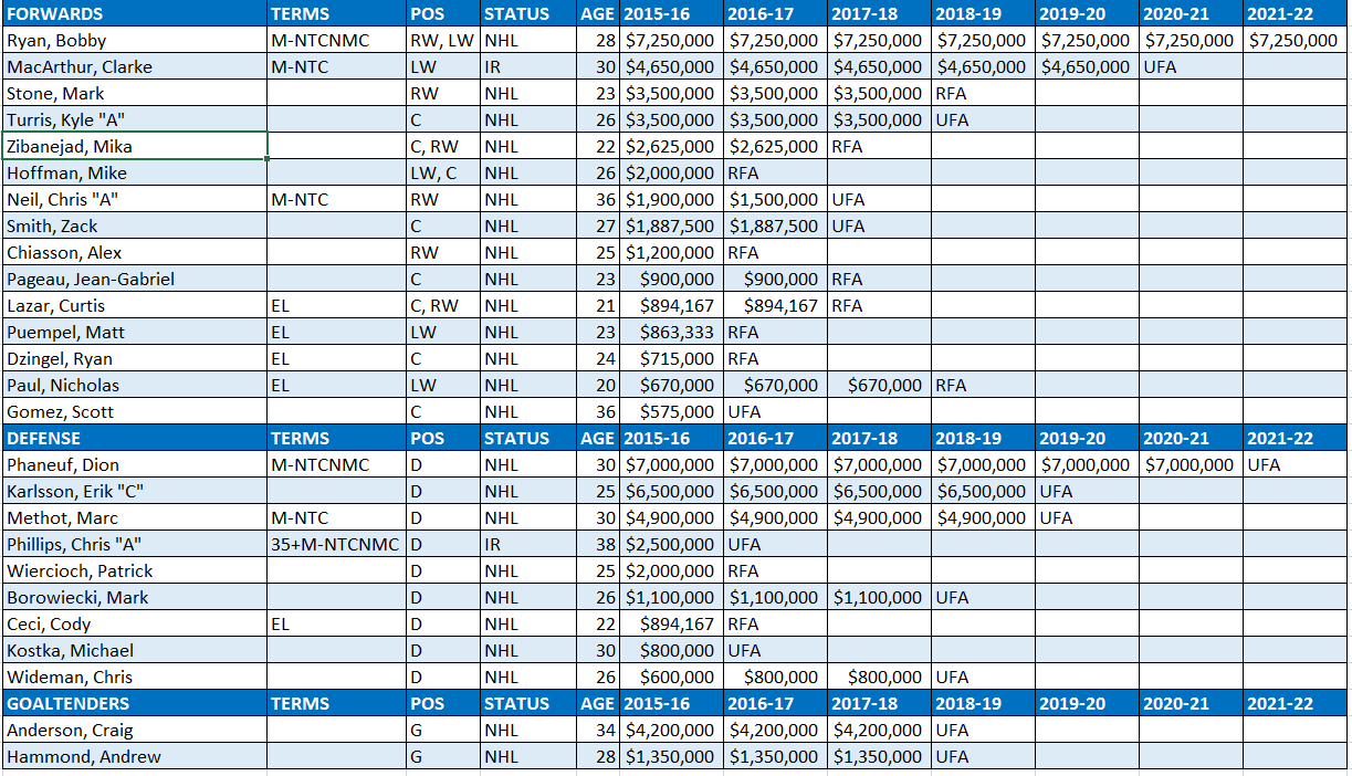 -Stone -Turris -Hoffman (assuming he's still here) -Ryan (tough one, will his salary scare an expansion team away?) -ZBad (finally finding his game? still only 22) -JGP (a versatile player, proved himself a soldier in the playoffs) -Lazar (hasn't found his game yet, hopefully he will)