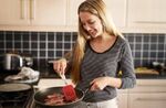 b:preparing the bacon for consumption